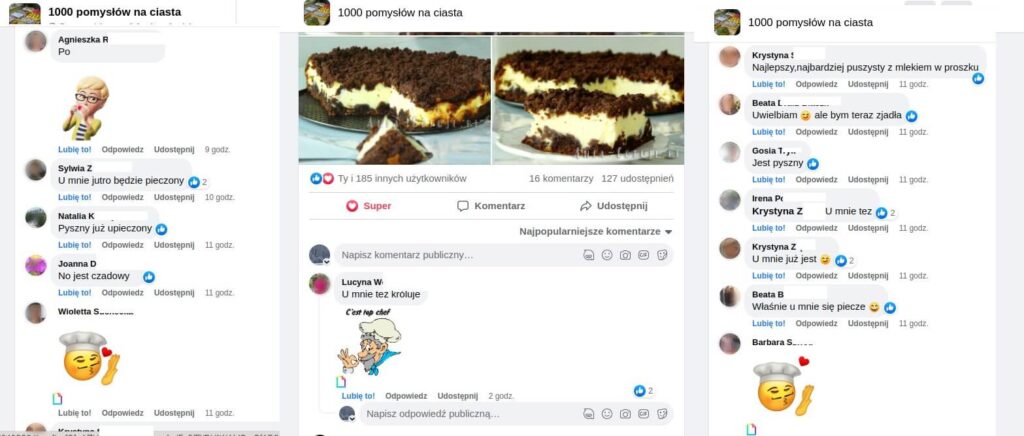 Jeśli jeszcze się wahasz przed upieczeniem mojego sernika królewskiego, to zobacz co o nim sądzą osoby z najpopularniejszej grupy dotyczącej ciast na FB: